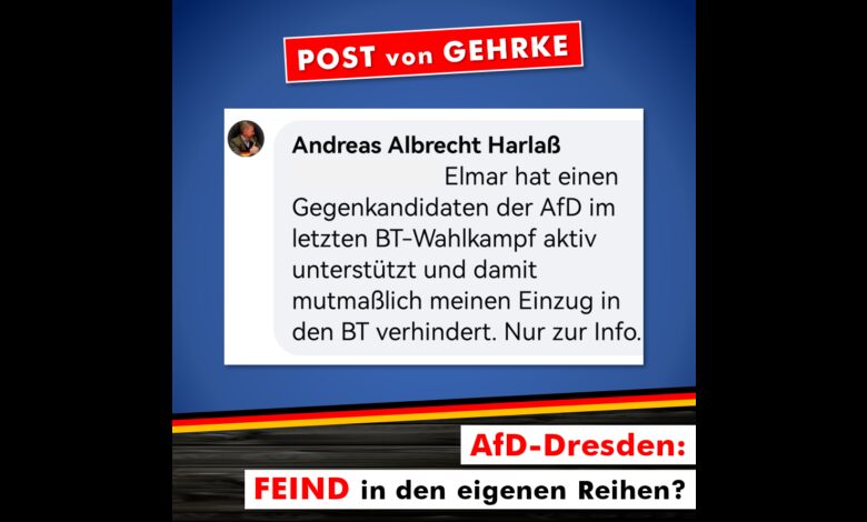 WeiterlesenDer sächsische AfD-Landesvorstand, Pressesprecher, Ex-Landtags- & Ex-Bundestagskandidat Andreas Harlaß (63), wirft mir parteischädigendes Verhalten vor – mit folgendem öffentlichen Fratzenbuch-Kommentar…