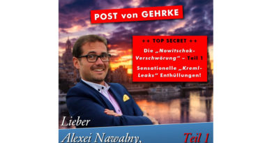 das folgende, ultrageheime Geheimprotokoll entlarvt das unglaubliche Ausmaß der „Kreml-Verschwörung“ gegen Sie: Anfang August 2020 zersplittert in Moskaus Geheimdienstzentrale „Lubjanka“, unter einem ohrenbetäubendem Schuss, krachend die Konferenzraum-Tür – welche offenbar nicht die Widerstandsklasse des Modells „Hallenser Synagoge“ besitzt. Im verziehenden Pulverdampf erscheint, mit nacktem Oberkörper auf einem sibirischen Tiger reitend und einer abgesägten Schrotflinte im … Lieber Alexei Nawalny, – Teil 1 weiterlesen